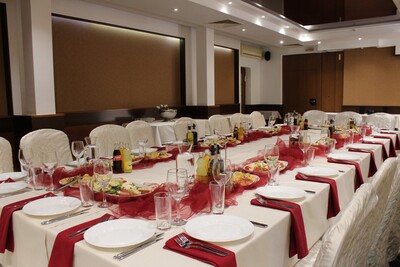 Салонът е просторен и има възможност за различни варианти на подредба. Допълнително удобство е прилежащият към хотела платен паркинг.